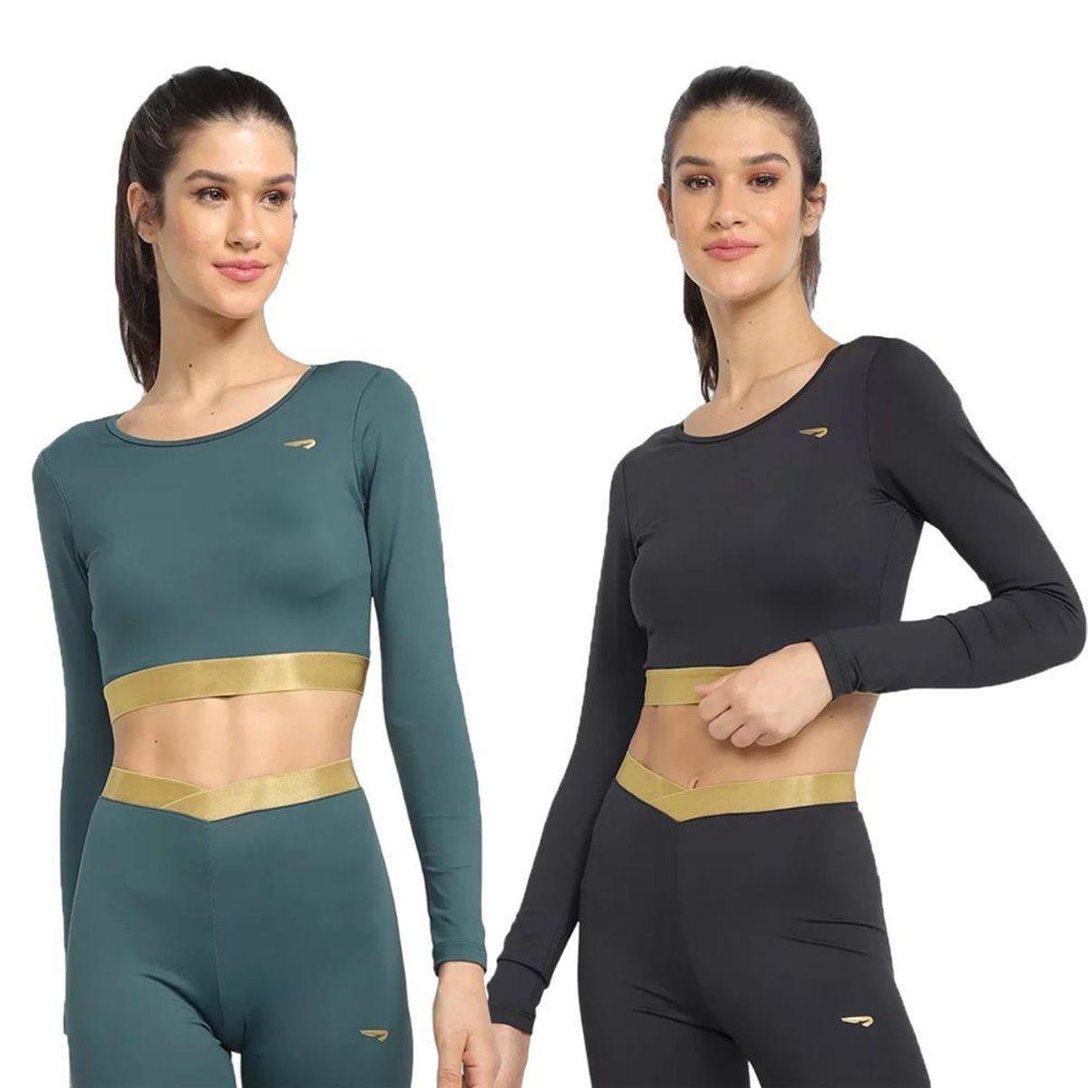 Carregue estilo e conforto para seus treinos, sejam eles na academia ou ao ar livre com o Kit 2 Tops Rainha Manga Longa Elastic. Confeccionado em poliamida e elastano, o produto dispõe de ótima elasticidade e leveza, e por possuir mangas longas, ele entrega mais mobilidade durante os exercícios. O modelo conta com gola redonda, bojo e barra elástica para mais sustentação. Suas costas abertas oferecem mais versatilidade e modernidade ao seu visual esportivo. Sendo composto em duas unidades nas cores preto e verde, o artigo complementa seu estilo esportivo. Medidas aproximadas (Cm): P-34x31x57 /M-36x33x59 /G-38x35x61 / GG-40x37x63 (Largura x altura x comprimento da manga). INFORMAÇÕES Referência: 4421072 Composição: 90% poliamida / 10% elastano Bojo: Possui bojo Manga: longa Gênero: Feminino