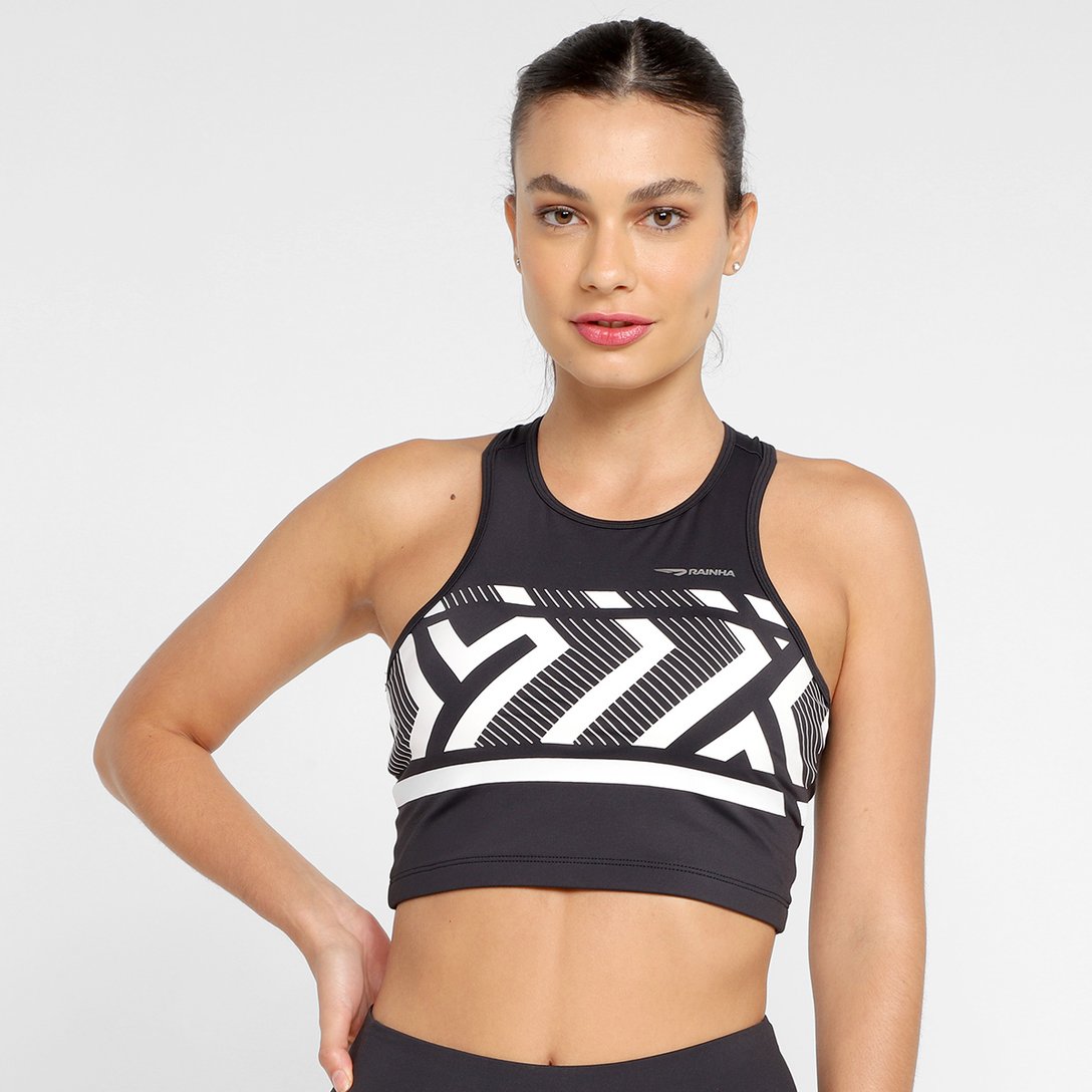 O Top Rainha Geometric com Bojo é a peça que faltava para levar funcionalidade e conforto na hora do treinamento! Prático, o top cropped com bojo Geometric da Rainha é ideal para qualquer atividade: corridas, musculação, aeróbicos, indoor ou outdoor, já que é elaborado em malha leve de poliamida, um tecido com grande poder de respirabilidade, toque fresquinho, macio e suave, além de facilitar a transpiração, tudo o que você precisava para completar seu guarda-roupa de academia. O top cropped feminino Rainha é bicolor, tem modelagem nadador, - conhecida por ter as cavas bem acentuadas -, caimento no estilo cropped, já que é mais comprido, alças grossas, bojo, estampa geométrica em tom contrastante e logo Rainha termoaplicado. Se você curte um visual sportwear, o top Rainha combina bem com camisetas oversized, croppeds ou babylooks, leggings, jeans, saias e shorts biker. Invista!